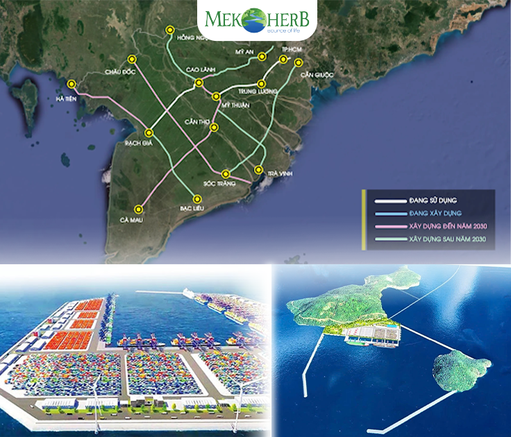 Hình 5. Minh họa mạng lưới đường cao tốc Miền Tây & cảng nước sâu Trần Đề (TP. Cần Thơ), cảng tổng hợp lưỡng dụng Hòn Khoai (tỉnh Cà Mau) được phê duyệt & khởi công theo quy hoạch